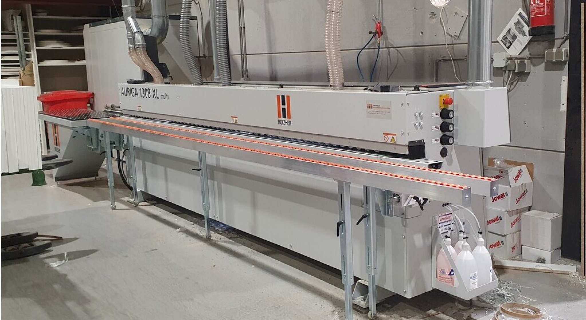 Deze kantaanlijmmachine is voorzien van meerdere radiussen, een luchttafel met een haakse invoerlineaal voor smalle kopzijden en een speciaal poetsaggregaat voor gestructureerde toplagen.