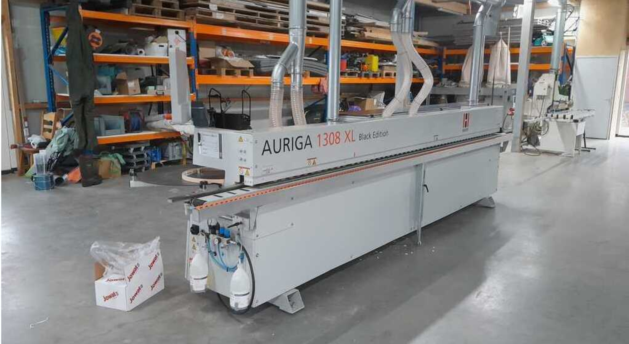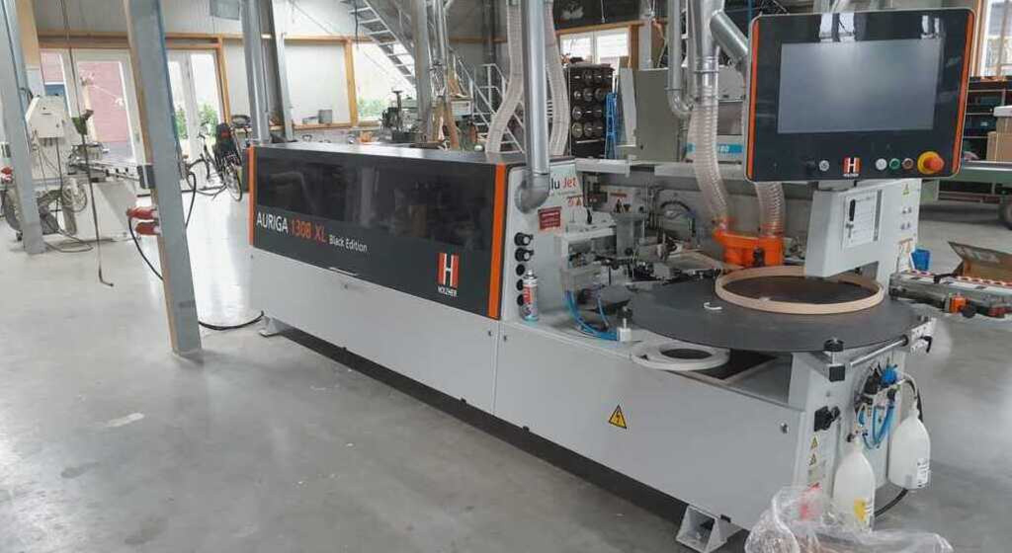 Met deze HolzHer Auriga 1308 XL, voorzien van het GlueJet 301 verlijmdeel (standaard PU lijm), kan Gerrit een kantafwerking van top kwaliteit realiseren.