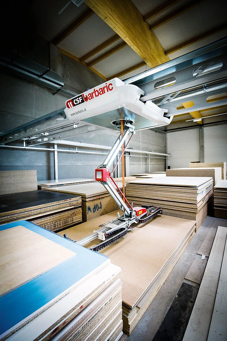 De slanke, intelligente manipulator meet en weegt elke plaat tijdens het verplaatsen. Met de geïntegreerde 90° draaieenheid (180° optioneel) worden platen in elke gewenste oriëntatie opgeslagen en automatisch uitgelijnd. Dat betekent: hoge proceszekerheid en nul beschadiging.