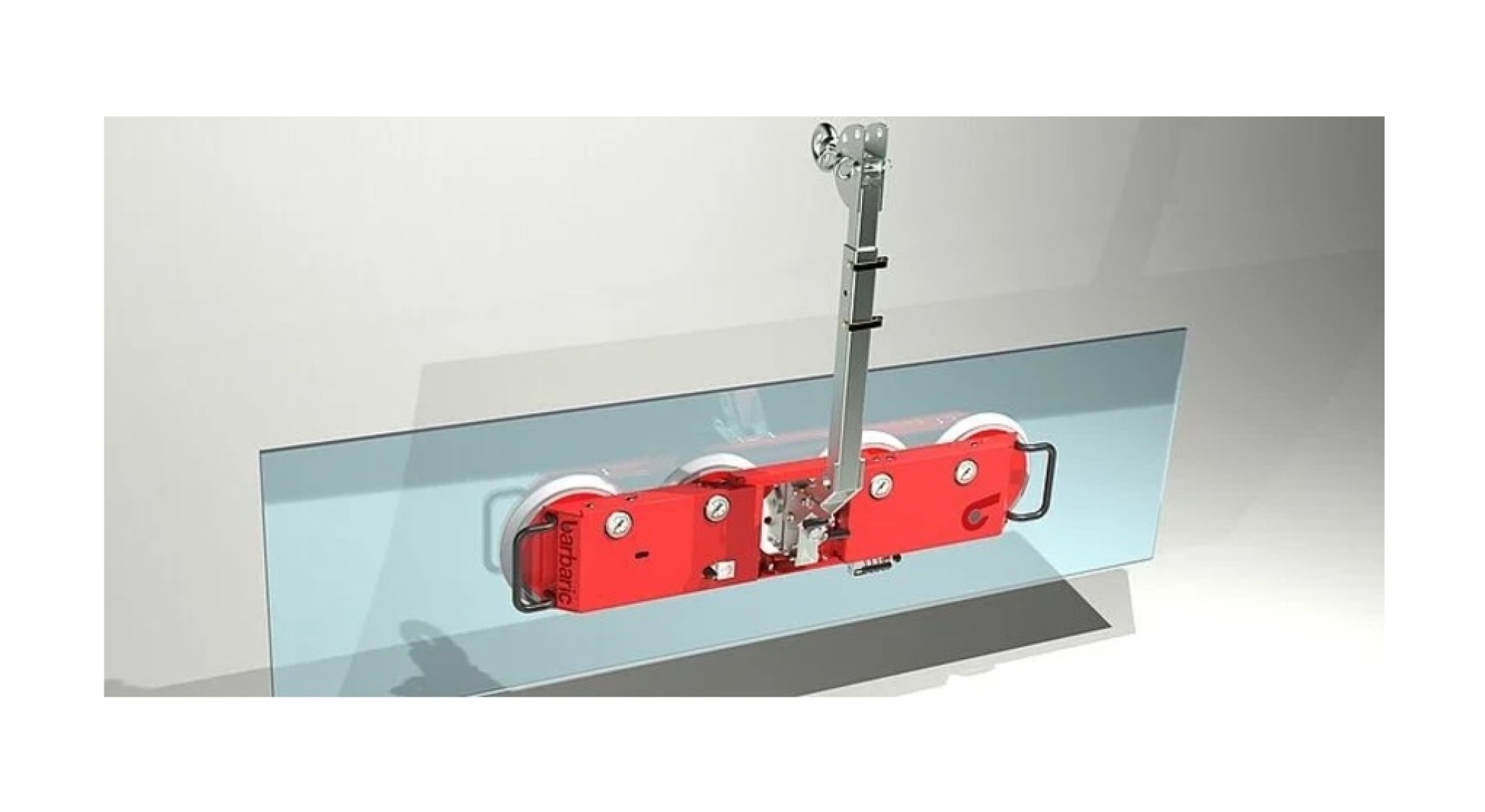 Speciale opstelling van de zuignappen voor de handling van lange en smalle glaspanelen