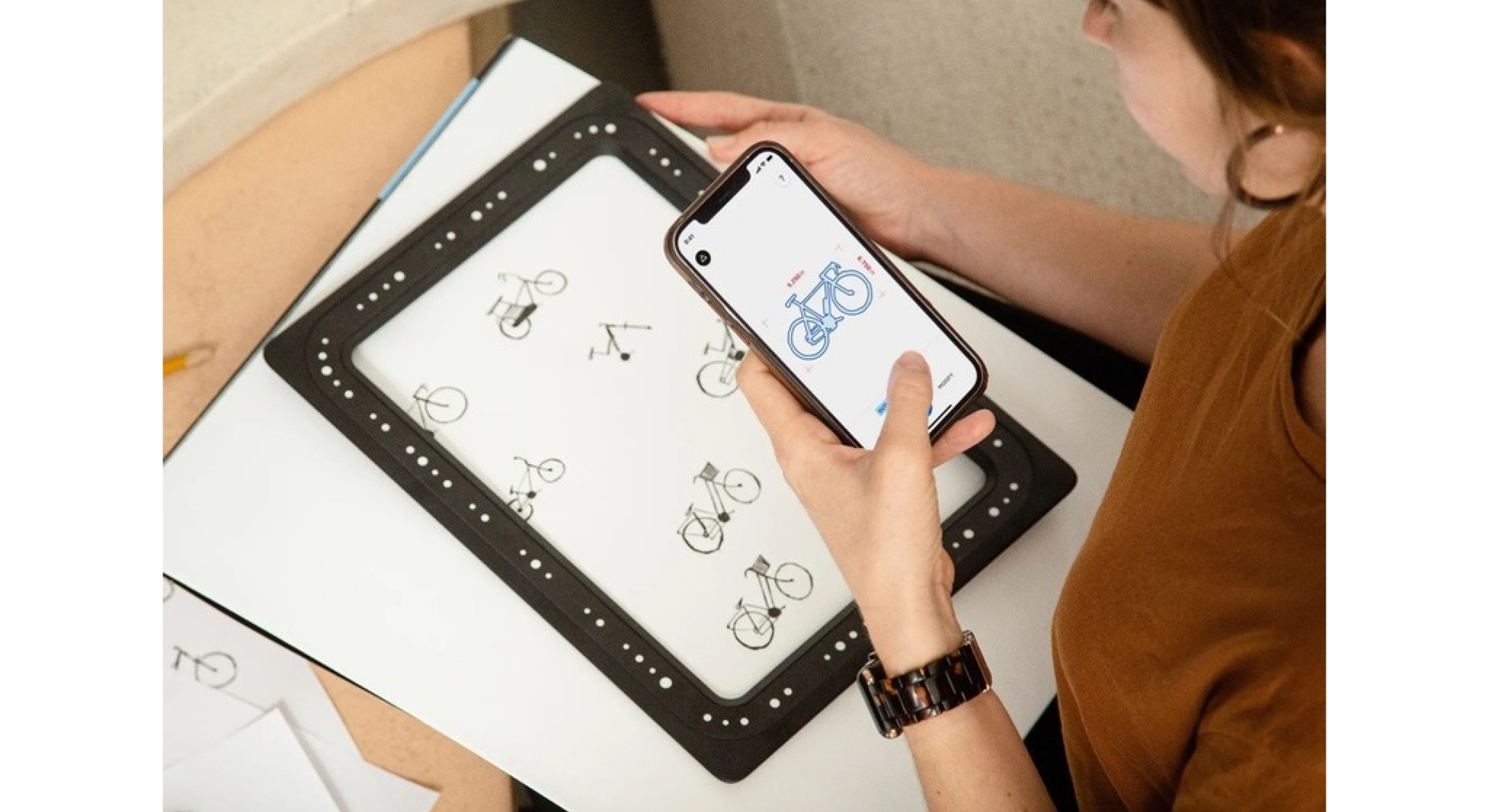 Plaats het Trace Frame over uw schets en zet deze om in een vectorafbeelding (SVG) met de Trace-app.