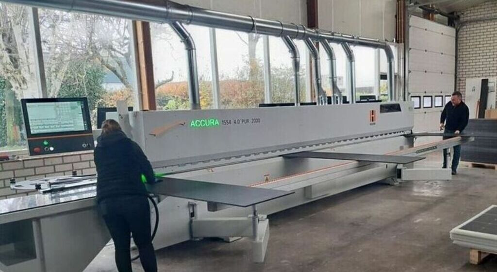 Vorige week hebben wij bij Compoform BV, de producent in Europa van lichtgewicht sandwichpanelen in Ospel, een nieuwe HolzHer kantaanlijmmachine mogen installeren. Bijzonder aan deze Accura 1554 PUR 2000 is het grote verlijmdeel met een lijmcapaciteit tot 12kg/uur waardoor de honingraat panelen goed gevuld worden en het kantenband uiteindelijk de gewenste verlijmsterkte krijgt.